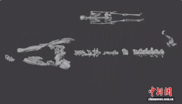 格兰德恐鳄(TMM43632-1)骨骼复原图。上方1.6米高人体骨骼(©Artec 3D)以供比例参考。凯发k8古脊椎所 供图