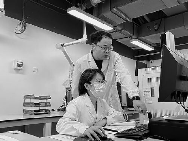 高翔(右)指导论文第一作者郭明明分析数据。深圳先进院供图