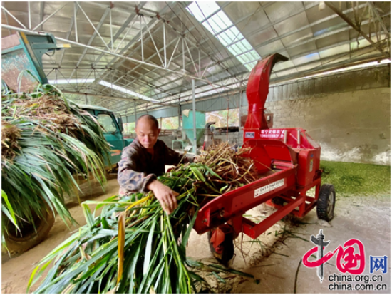 清晨,45岁的谭泽侃第一件事就是打开碎草机,将成捆的牧草打碎后掺入玉米面,给自己养殖的牛准备饲料。“听着这些牛咯吱咯吱吃草的声音,心里格外舒坦。”谭泽侃说。一年前,他还在东部沿海的制衣厂打工。家中父母年迈、体弱多病,子女一个上大学,一个即将进入高中,他一度感到压力倍增。后来,听闻家乡开了菜牛种养殖基地,收入还不错,他决定加入。“现在,我和妻子在这儿包吃包住,每月管理基地的牛收入一人有3000元,并且村里合作社每年还给我们10%的分红。”谭泽侃说。