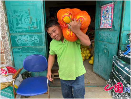 谭建华是思恩镇三乐村肯福一组的群众,搬迁以后,通过技术人员的帮扶,他种起了红心柚。如今已是丰收季节。张蔚蓝/摄