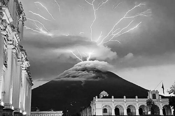 危地马拉“水火山”上的闪电。图片来源:Mario Dalma Leon